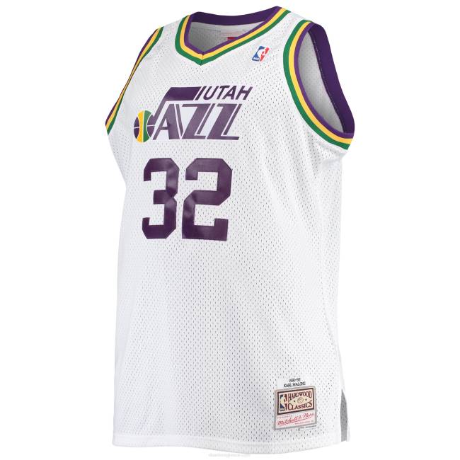 NBA N40H4462 Γιούτα τζαζ Karl Malone Mitchell & ness λευκή μεγάλη και ψηλή φανέλα κλασικού swingman από σκληρό ξύλο